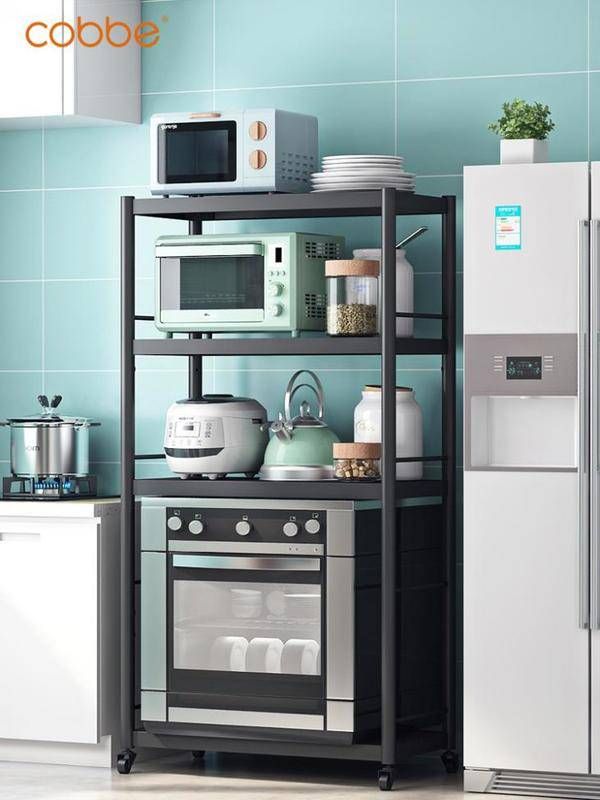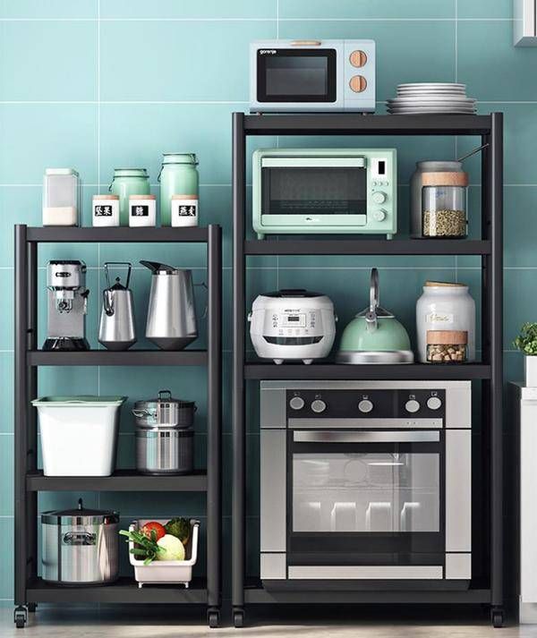 以4层的落地置物架为例,每层的面积为60cm40cm,每层的高度为36cm,光是一层就可以放下电饭锅,微波炉等大件,更不用说这个置物架有整整四层,可以说基本上一个架子就能收纳厨房内所有的工具杂物。