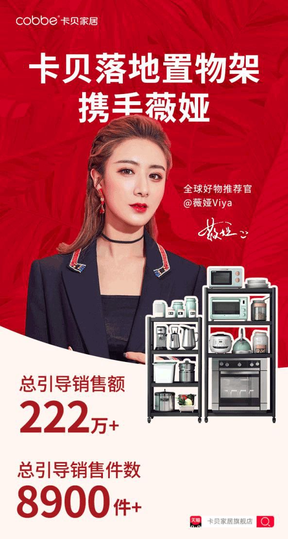 7月29日晚,卡贝家居携落地置物架登陆“带货女王”薇娅Viya直播间,为广大观众送上福利。这是卡贝继推车式置物架的大热后,第二次携手薇娅直播带货,同样取得了非常耀眼的成绩。直播间总引导销售件数超过8900件,总引导销售额突破222万!