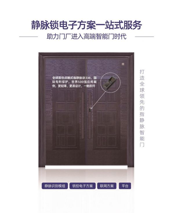 纵观当下多种生物识别开锁方式,3D人脸识别依然存在功耗高、价格高、扩展空间较低等问题,即使应用到门锁一体化智能门上,问题依然难以解决。面对指纹识别市场面临过于饱和,利润空间较小等情况。当下静脉识别,或已经成为大趋势。现阶段国内自主研发静脉模块已达全球领先水平,扩展性极高,例如国内静脉识别领军品牌微盾科技,其点触式模块为全球首创,获国际PCT发明专利产品,拥有世界500强应用案例,超薄厚度强抗静电低功耗,成众多门锁企业的选择。