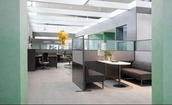 据介绍,圣奥新推出的维度系列,八类桌面收纳+八种柜体收纳+四种脚型选择,能打造80种单元组合形态,满足不同工作模式的随意切换,保证工作流的平稳顺畅,适应不同团队的空间需求。新一代的然之趣系列产品,也采用了模块化组合,主管桌、职员桌、置物柜等拥有多种组合方式,增加了办公空间的灵活性和互动性。
