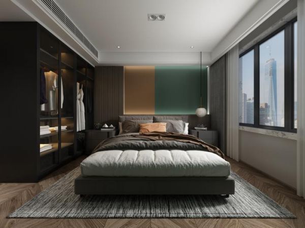 业主为二十六岁单身男青年,性格开朗。对家的要求就是住的舒服,客厅要大,房间要大。留一个小孩房备用。平时基本不做饭,但对生活品质要求比较高,随性的性格造就了这个作品随性而不随便的布局。因为业主一个人住,客厅也相当于起居室使用。但客厅和主卧之间还是用移门分隔,偶尔也会有客人过来玩,可以在客厅走动,外卫不设淋浴。内卫应业主要求,做了浴缸。衣帽间是开放式的。
