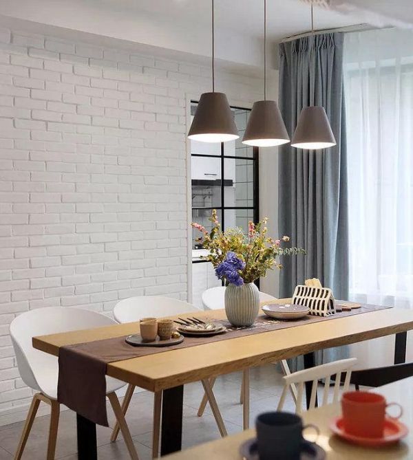 餐厅和客厅电视背景墙,这些局部的墙面,可以按照自己的喜好进行。餐厅需要有收纳,有了餐边柜之后,还可以做隔板作为摆放装饰物的地方。也可以用大一点的装饰画来点缀就餐环境,或者硅藻泥等其他个性化的装饰。