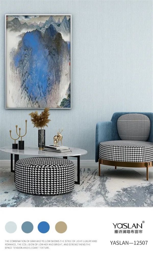 色泽浅淡的柔和蓝,被充分运用为雅诗澜产品的色调,不得不说它确实十分适宜用于装饰空间的背景墙面。