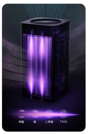 在深度“除醛”这一块,它可以说是足够优秀。首先使用多层过滤设计,当通过第一层过滤后,全机8道Sparkle-UV光催化起到二次分解甲醛、二甲醛、TVOC等有害气体的作用,最后光解成无毒无害的co2和小分子水。除醛后甲醛浓度为0.01mg/m³,远低于室内甲醛浓度安全标准0.1mg/m³。无论是新装修还是新购置家具、家居、家纺产品,有它护航,即可远离甲醛等有害气体,呵护家人健康呼吸。