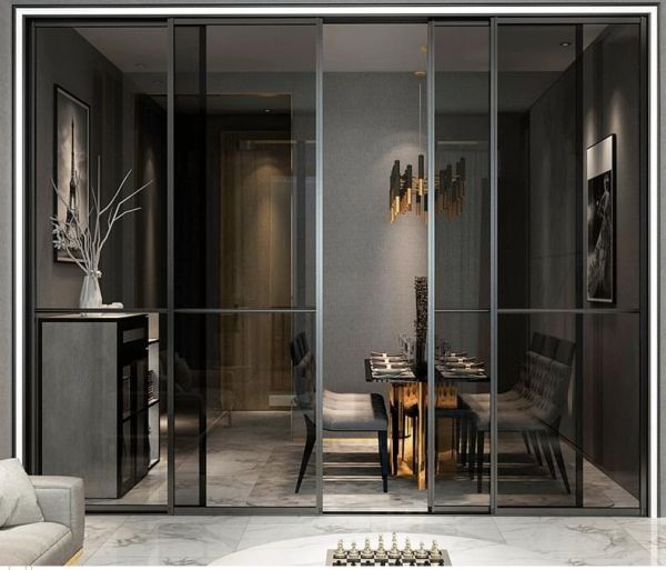 3.多扇推拉门多扇推拉门一般和同房间高度相等,完全打开后两边空间统一。
