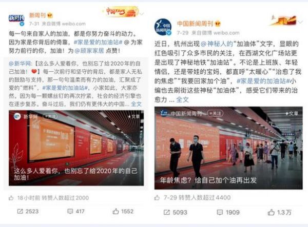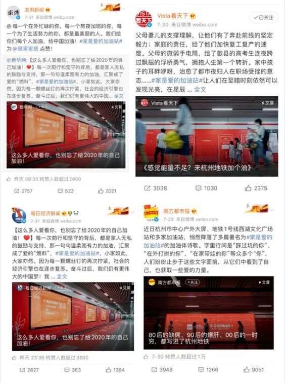 随着地铁站内的“顾家”加油站在市民间引起的巨大反响,#家是爱的加油站#在互联网更是获得了高热度话题关注,这股触动内心柔软的温暖加油力量,在线上线下缓缓传递。这一波热议更是吸引了众多媒体的关注,这一股“加油体”热,被新华网、新华网、环球网、新周刊等各大主流媒体的点赞评论,让更多的网友参与点赞为身边人加油。