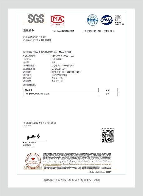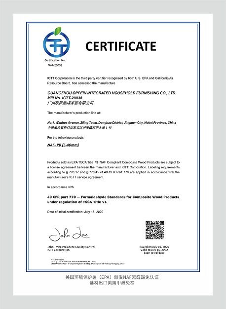 - 欧派无醛添加爱芯板获得美国环境保护署颁发的EPA(NAF)无醛豁免认证、SGS认证