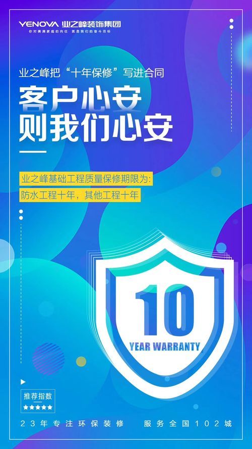 2019年10月,业之峰在家装行业第一个喊出了“十年质保”的承诺,主动把国家要求的2年质保期延长到了10年。