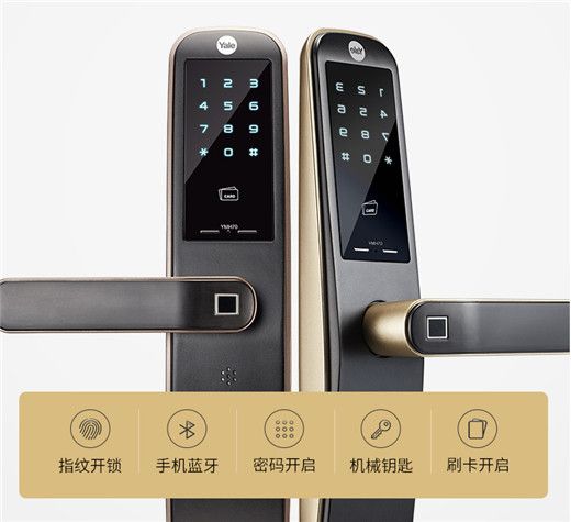 耶鲁智能门锁最多支持多种开锁方式,除了最常用的指纹,还支持蓝牙、密码、卡和钥匙开锁,可以让家中成员根据自己的习惯找到最适合自己的开锁方式。同时耶鲁智能门锁还有虚位密码防偷窥、把手式指纹扫描快速开锁、安全把手防误开、自动马达锁定、临时访客密码、全程语音提示、暴力侵入报警等一系列功能,让使用体验更加流畅、更加人性化。