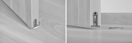 门框与门体平坦契合,门档与装饰条的契合也近乎平坦,地板上的磁吸式地碰仅略微凸出于地板,整体上减少段差,简约优雅。除了表面上的整体一致,隐藏式的各个小部件也引人注目,精巧的内藏式门碰,防止门体和墙面、家具发生碰撞;闭门后1门框上无凸起的隐藏式合页,缔造整体协调;磁吸门锁,门体开启时,锁舌内缩,避免刮划危险,门体关闭时,锁舌自动吸附门框,无噪音、锁舌档板不外露,造型美观。同系列推拉门配备UD结构,采用人体工学设计,老人及儿童也可以轻松开启。