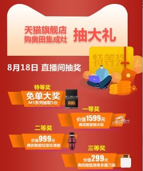 不仅有奥田智能晾衣架、智能垃圾处理器、智能杀菌刀架,还有5台万元的免单大奖,等着你来领回家!