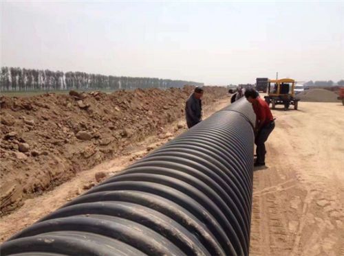 1、埋地排水使用钢带增强聚乙烯 hdpe螺旋波纹管使用连续钢带压成形的螺旋钢肋缠绕一般都是都内外两层热熔接出的聚乙烯间,将钢材当中的高钢度,高强度与聚乙烯之间的柔韧,耐腐和耐磨度结合到一起,从而就产生了直径范围中的300到2400毫米,而长度是在6到10米,环钢度它能达到SN8,SN12.5,SN16这三个等级,这样直接就弥补过去较大直径塑料埋地排水管中的环刚度只可以达到SN8当中的限制。