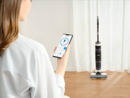 看得见的灰尘和污垢无须担心,看不见的灰尘才最令人焦虑。添可会思考的智能洗地机芙万能够实时显示清洁位置的洁净程度,并通过机身配置智能LED屏上红蓝环柔性变化呈现。同时,主机内设WIFI,能够与手机APP进行互联,能够记录和反馈产品工作状态、各部件是否存在异常……智能人性化的语音提醒也让你更便捷的掌控全场。