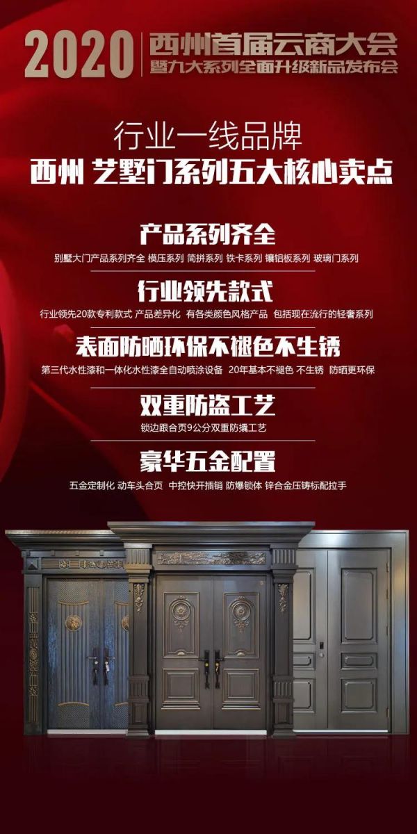 本次西州将军门业首届西州云商直播大会暨九大系列全面升级新品发布会完成邀约经销商268+,这无疑是为2020年西州将军门业品牌持续化发展再度添砖加瓦。西州将军门业有你们的加入,势必再创辉煌。