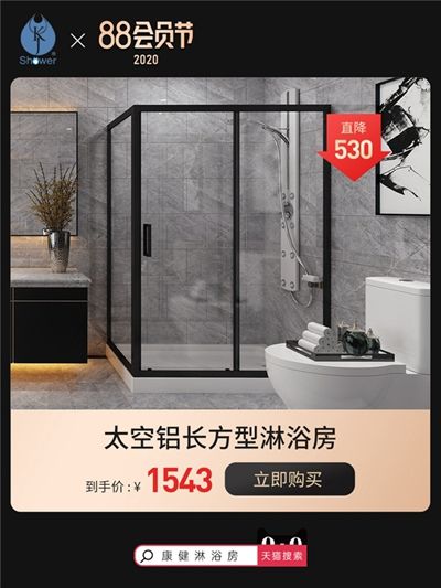 康健卫浴 | 玩转天猫88会员节,领双券享淋浴房秒杀价!