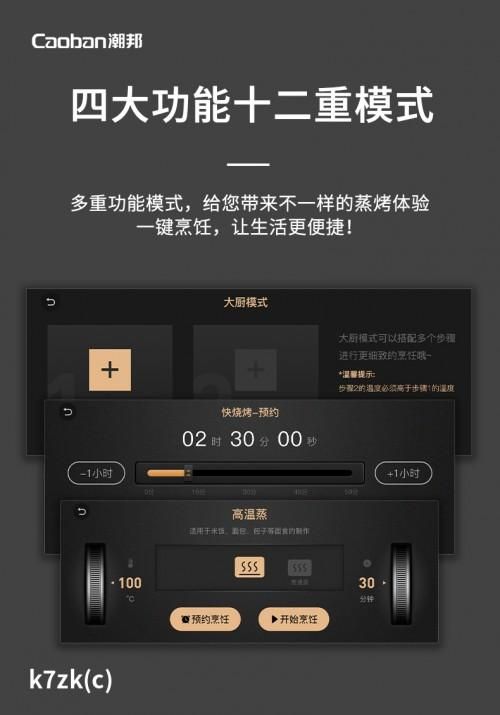 潮邦顺势推出了K7zk(c)智能蒸烤一体集成灶,提前站上“懒人厨电”的市场风口。