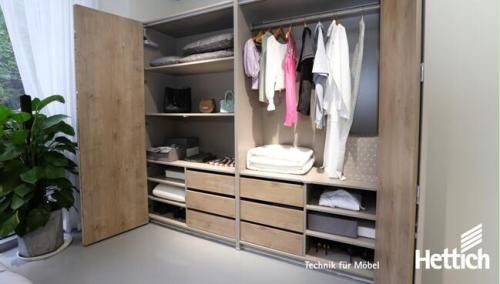 德国海蒂诗(广州)体验中心展示了如何通过大型移门折叠门的设计让普通衣柜变声衣帽间,