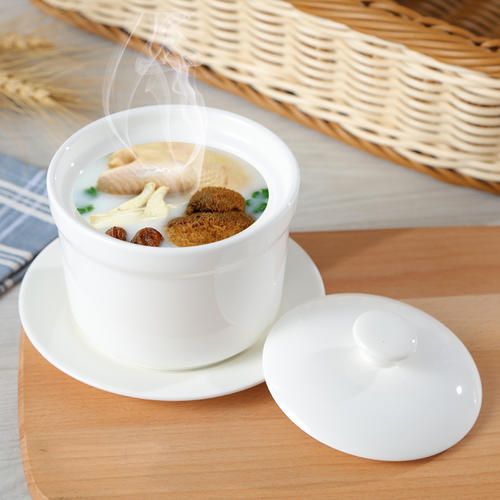 选购炖盅时,可以看炖盅的釉面,表面光滑工整,没有凸起小颗粒、凹陷等问题说明质量较好,而且应该是比较饱满的圆形,不应存在翘边。