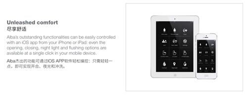 Meridian纽瑞和Alba艾帕智能座厕不仅拥有抗菌座圈,还有紫外线杀菌消毒喷嘴,升级清洁舒适的使用感;不同的是,Alba艾帕智能座厕还可通过APP软件操控,只需轻轻一点,即可享受非凡功能。