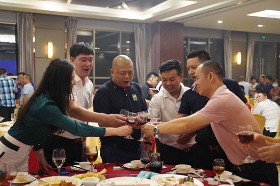 参观完运营中心,大家一起移步到在东莞华庭花园酒店,作进一步交流。来自深圳、东莞、广州及佛山等地约300余名业界精英汇聚一堂,伴随着舒适的音乐,大家享用着贴心的美食,在难得相聚的会议现场,大家相互交流公司近况、品牌推广、营销思路等。
