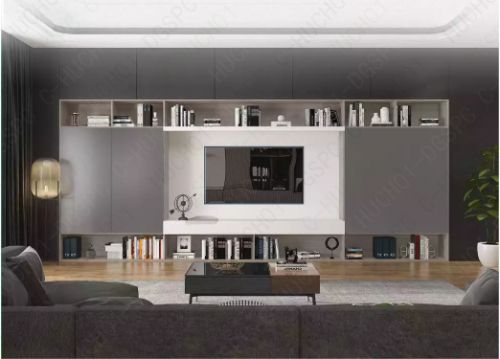 而中铝·绿萝美巢匠心设计的铂泽系列电视柜,以电视为中心,定制回型收纳区,合理规划收纳空间,收纳与美感兼备。上下是镂空的陈列空间,大片开放格可摆放主人收藏的艺术精品、喜爱的书籍或者绿植,营造雅致的空间氛围;左右是隐蔽式的大边柜,可满足大多数用户对客厅的收纳需求,将物品放置入内,关上柜门,即可摆脱客厅杂乱的烦恼。