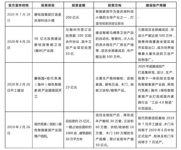 下表为整理的碧桂园近2年来在智能家居领域大手笔投资建厂资料。
