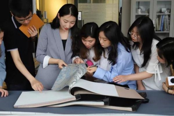 然后记者团在汇明工作人员的带领下,通过文化墙、微场景以及展厅等,更详细地了解到汇明的织锦提花工艺。