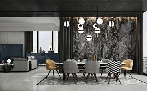 有了陶瓷大板,空间设计才有了更好的选择。大规格尺寸可以营造客厅更大视野,无限连纹大板还能作为背景墙打造高颜值空间。除了在墙地面应用上,还可以应用在茶几、吧台、酒柜等家具饰面,为整体空间营造出和谐一体感。因其面积大、好清洁的特点,厨房和浴室也都能用。总的来说,陶瓷大板的应用场景十分多元,给设计师带来更多空间灵感,可以实现时尚大气的家居生活美学。