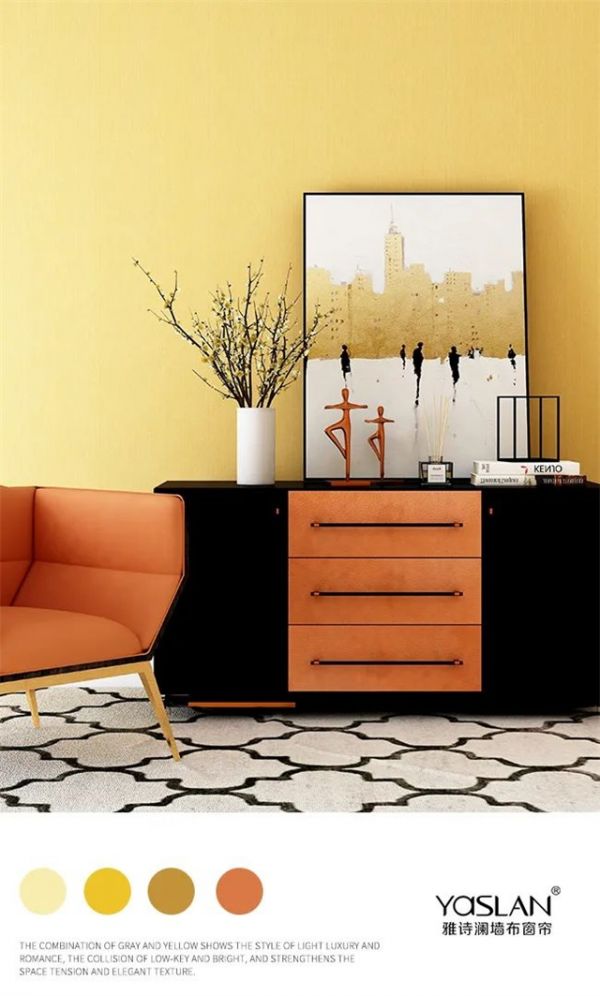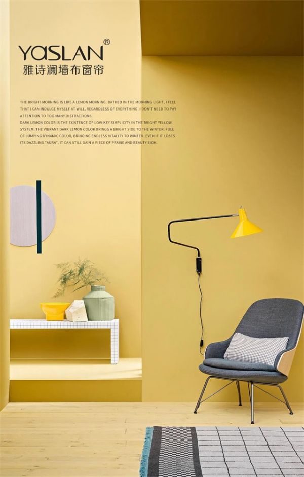 当芒果黄跃上你的墙面,雅诗澜这款芒果莫吉托黄素色墙布就像翩翩飞舞的蝴蝶,将夏日凉爽的气息引入了你的家居。