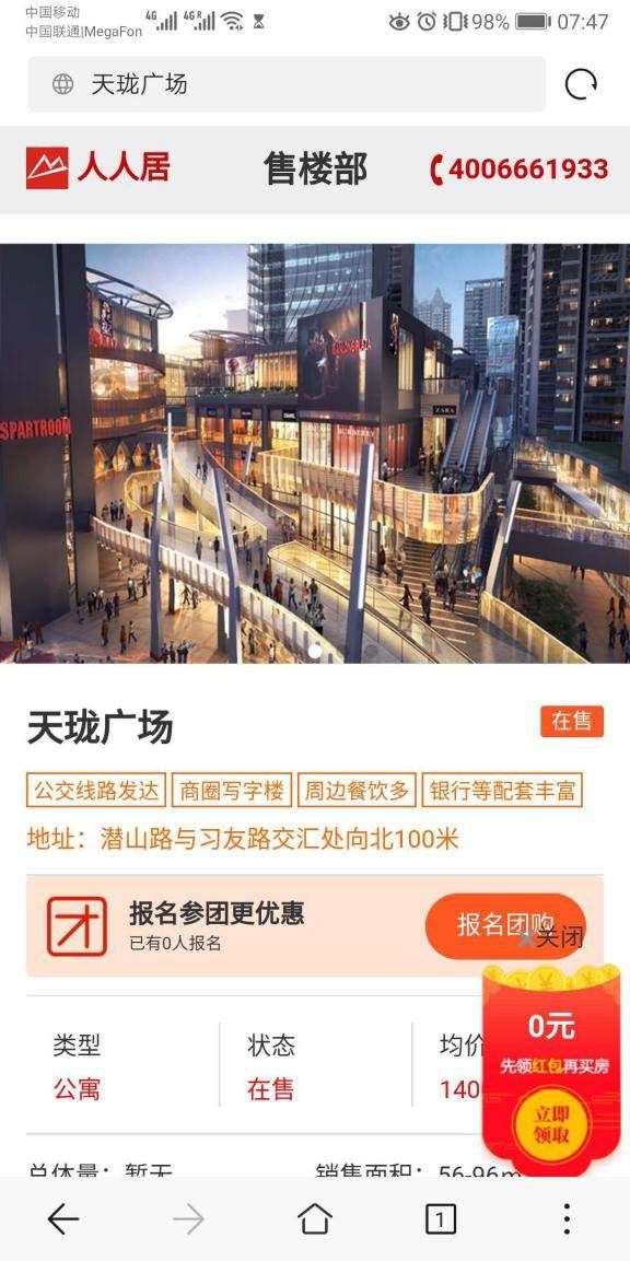 天珑广场,条件便利。项目区域交通便利,潜山路、习友路、金寨路高架主心干道环绕,由市区驾车金寨路右转习友路无红灯,潜山路转金寨路高架无堵点,10余条公交线路环绕,距离合肥高铁南站直线距离5 公里,仅需10分钟车程即可到达;项目自带12万方商业配套,专享四层高低搭配餐饮底商,满足不同需求,员工用餐便捷;2000多个停车位,停车方便及时。