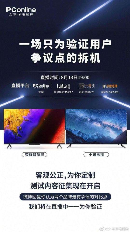 正是这些消费者感知不到的严酷品控,才能铸就千锤百炼的标杆品质,让智慧屏“无惧拆机”,8月13日,太平洋电脑网将针对荣耀智慧屏与小米电视之间的争议点再度进行拆机对比,荣耀智慧屏X1系列能否延续不败神话?网友们纷纷表示很期待。