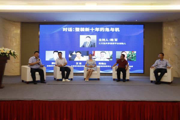 论坛最后,居然之家中源怡居投资总经理曾超,金煌装饰集团副董事长廖成名,千思装饰集团总经理王洁,喜尔康高级顾问张学之论道家装,由三只兔共享装修平台创始人韩军主持。大家用开放的心态交流了关于家装的看法。廖成名认为整装的核心在于整合产品,整合产业工人,整合服务。王洁认为不盲目扩张,是千思所有直营门店都盈利的关键,加大产品研发,深耕团队,将性价比做到最高是持续盈利的核心。作为智能家居生产商,张学之谈到智能互联网可以帮助家装实现交付变革,在施工过程中提高效率。