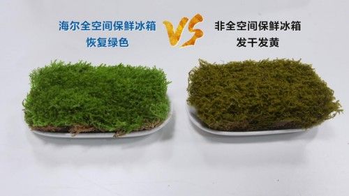 冰箱如何做到营养无损失?给食材“敷面膜”是关键。 此次,2份泥炭藓再次验证了海尔冰箱的保鲜实力。从实验中可以看到,存储15天后,海尔全空间保鲜冰箱中的泥炭藓恢复嫩绿水润,非全空间保鲜中的仍旧发黄、未完全恢复水润。