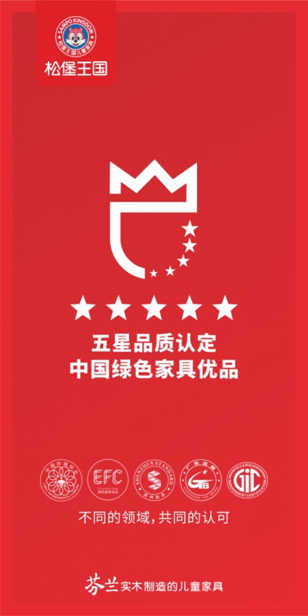 从进口北欧实木到行业内率先全面使用水性漆,从中国家具环保等级最高的“绿色家具优品”认证,到比肩国际标准的深圳国际家具展“五星品质认定”,这些坚守和荣誉都承载了松堡王国作为儿童家具领导者的行业使命与社会责任。