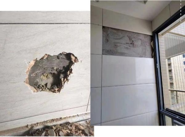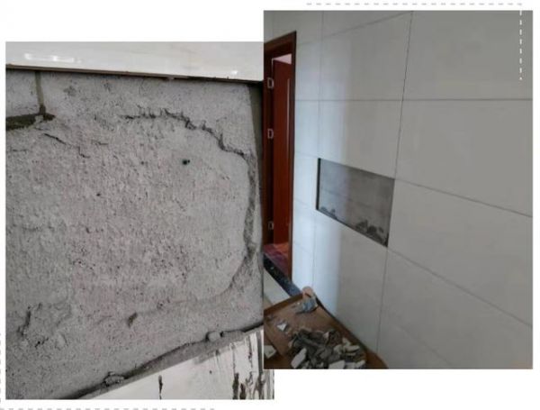 住在新怡豪门的才先生是在靓家居增城万达店签的装修,住了快满一年后,发现卫生间、厨房砖上墙有部分墙面空鼓现象出现。