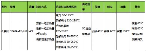 第四是凯度台式蒸烤一体机的8系列,分别是R8、H8。40L的超大容量可以算是台式蒸烤一体机中的佼佼者了。具体的参数如下: