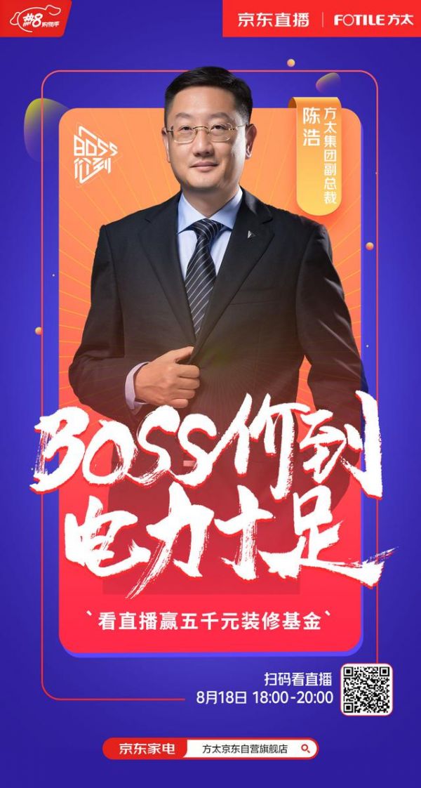 据悉,此次8月18日方太副总裁陈浩携手京东直播亲自带货,爆款限时享BOSS直播价。8.18 19点,方太副总裁陈浩更是破浪而来,看直播还可赢取5千豪礼,瓜分万元京东红包雨,与主播互动还可享惊喜。福利不停歇,想要一览方太副总裁风貌的可扫描下方二维码提前锁定直播间,相信这次818,方太京东定能再创佳绩。