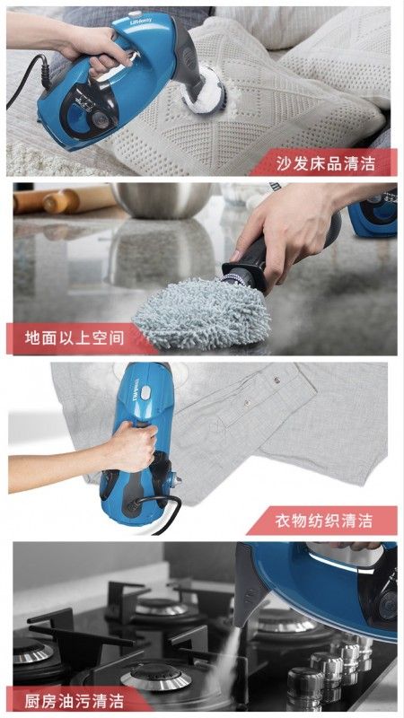 在手持模式下,可以进行各类清洁,从厨房灶台的油渍解除、衣物的快速熨烫、沙发床品等布艺的清洁、孩子玩具的消毒以及地面以上的各类材质清洁,都可以用得到上述配件,可以说有了鲨客蒸汽拖把P8,就相当于把一台多功能蒸汽清洁机搬回家啦!