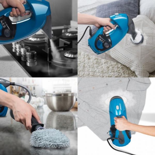 通过120℃高温蒸汽能够消毒衣物、给床品除螨、厨房灶台燃气灶去油污等等。水箱部分可以拆下变为手持蒸汽机,搭配多种喷头,用于清洁床品、沙发、外衣裤、桌面、台面、灶具等等。