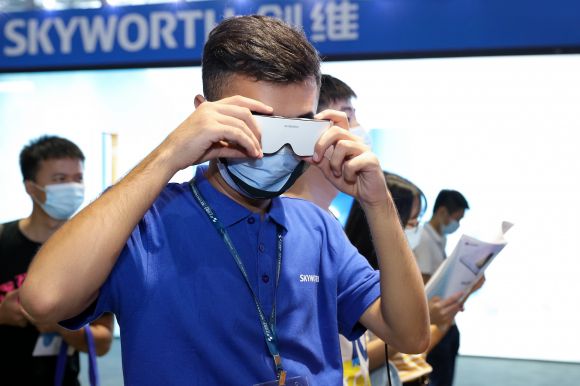 在创维数字展区,另一款重磅产品创维超薄VR眼镜V601则首次结合了8K机顶盒,为参观者带来沉浸式的VR游戏体验。V601除了支持3DOF体感交互,兼容多平台、多VR游戏应用接入,还创造性地以低于150g,薄于23mm的机身厚度,极大地提升了VR眼镜佩戴的舒适度。