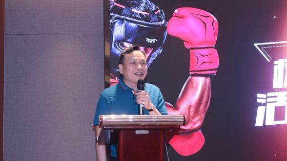 史麦斯莫帆总经理首先为会议致辞!莫总现场带领史麦斯核心经销商“老哥们”喊出了“动起来,活下去!”的口号。