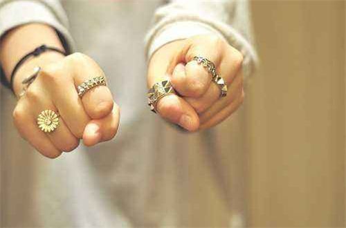 2、女性左手戴戒指分别意义是大拇指代表了代表权势与自信,但是很少人会这样戴,食指和无名指戴的戒指表示单身状况。而中指在中国有些地方流行男左女右,女性右手戴戒指说明该女性已是名花有主,或者就是在恋爱当中,但这都表明都还没有结婚的含义,还有就是无名指在中国的传统上是男左女右,女性右手无名戒指,有可能是结婚戒指,也有可能没有表明任何含义,另外就是小母指这个通常表明自己是单身,是一个不婚主义。