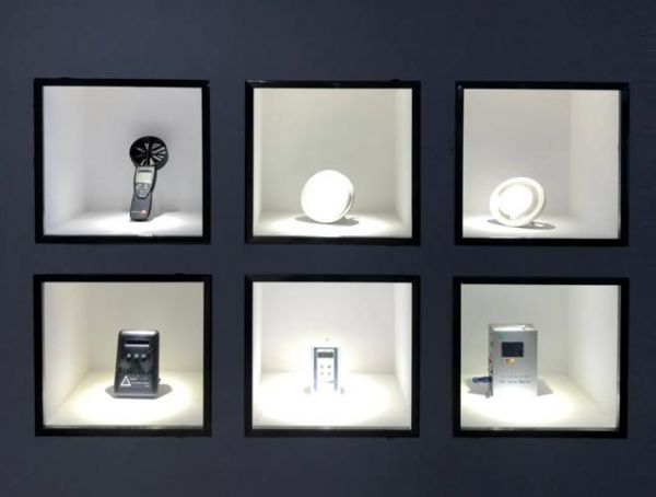 橱窗里展示着DephinaΦ125室内圆形金属风口以及各类检测仪器,在项目验收时,富有经验的工程师将会带着这些仪器检测风口风量,室内PM2.5等,确保新风系统稳定高效运转,提供健康,舒适,稳定的高品质家居环境。