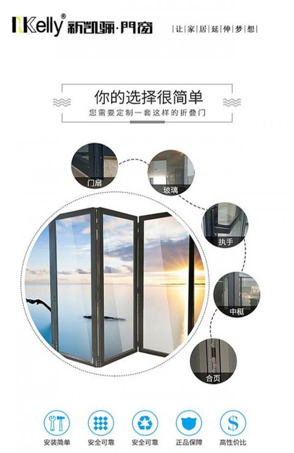 3、先进的设计理念:新凯骊门窗有自己独特的特色,不断创新风格,以设计为核心 品质制造为根基,开启门窗新时代,创造更有个性化的产品。