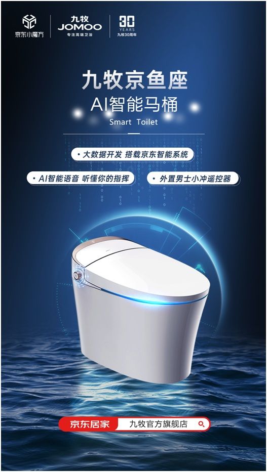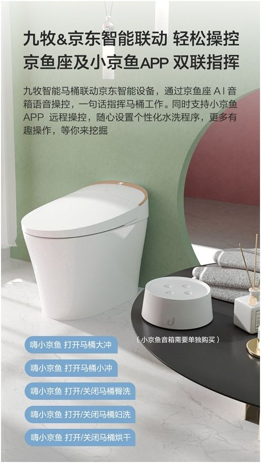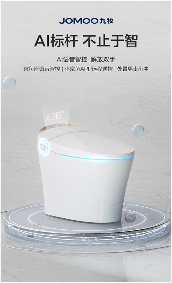基于对用户和市场的了解,九牧洞察到智能消费这一发展态势后迅速布局,与京东小京鱼智能系统联合,推出了C2M京东定制款AI智能马桶ZS510T,小京鱼系统下的全屋智能互联从客厅、厨房、卧室、阳台等,走向了卫浴空间的互联,真正实现了全屋智能互联。九牧ZS510T植入了小京鱼控制系统,消费者只要通过京鱼座音箱进行语音或者小京鱼APP下发指令,就能轻松控制智能马桶的臀洗、烘干、冲厕等功能。