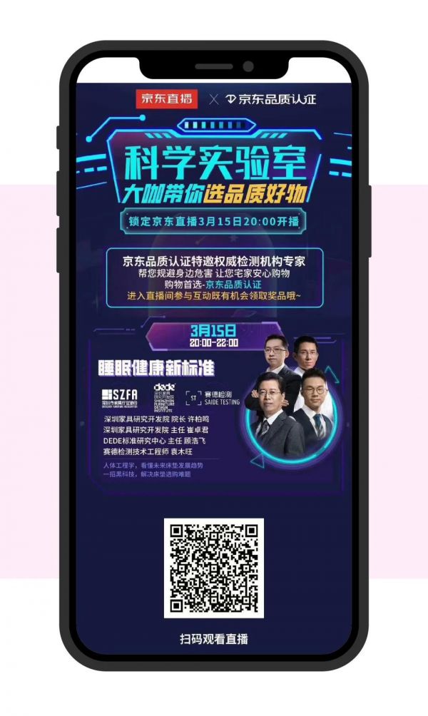 京东品质认证特邀深圳家具研究开发院院长许柏鸣、深圳家具研究开发院主任崔卓君、DEDE标准研究中心主任顾浩飞、赛德检测技术工程师袁木旺等权威检测机构专家,从人体工程学看懂未来床垫发展趋势,帮助消费者解决床垫选购难题。