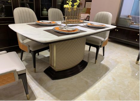(图:素寓住宅家具真皮餐桌椅展示)