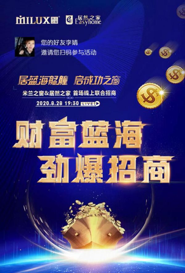 "居蓝海艋艟 启成功之窗"——居然之家&米兰之窗联合直播招商活动大幕已经开启,手速你有,席位抱走!让我们一起,选择米兰之窗开启财富之窗!