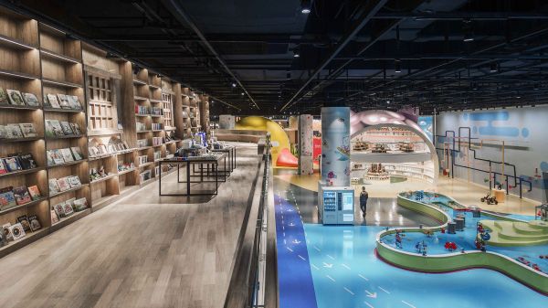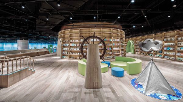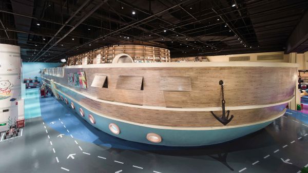 FUN星球绘本图书馆有别于传统的室内设计,脱离于传统的空间手法,将空间体验与业主的品牌相结合,将IP形象融入销售主题空间,将传统的绘本空间融入船的形象,辅以VR体验馆,模糊阅读、教育、绘画、玩耍空间的边界,打造焕然一新令人惊喜的主题空间体验。