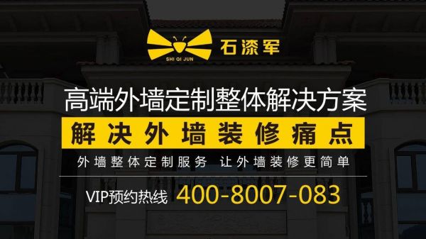 石漆军外墙装饰有限公司始创于2017年,是国内高端外墙定制整体解决方案提供商和服务商。石漆军是长兴化工集团配套高端外墙定制品牌,专注高端外墙定制,与长兴旗下“统艺仿石漆”构成战略矩阵共同推进中国外墙装饰行业的变革与创新。石漆军以全新商业模式开创外墙行业“定制”时代。